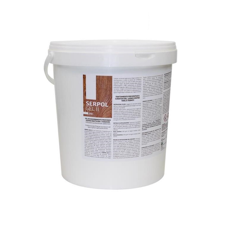 Serpol Gel II è un prodotto biocida preservante del legno, con azione insetticida e fungicida, formulato in gel a rapido e profondo assorbimento. Classe d’uso 1 e 2, facile da usare, non gocciola, non odora e non evapora. L’azione insetticida è dovuta alla presenza del principio attivo Permetrina. Le larve degli infestanti del legno vengono uccise dal contatto con il legno trattato. Le termiti, che mangiano il legno trattato, lo distribuiscono in tutta la colonia per trofallassi, causando la morte non solo di coloro che hanno ingerito il legno, ma anche di parte della colonia. I principi attivi Propiconazolo e IPBC conferiscono al prodotto proprietà fungicide. Provoca una diminuzione del grado di colonizzazione da parte dei funghi che hanno attaccano il legno, ma soprattutto ne previene l’attacco.